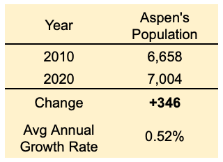 This built environment growth is occurring as Aspen's local population over a decade period was minimal and perhaps is largely assignable to new affordable housing residents.